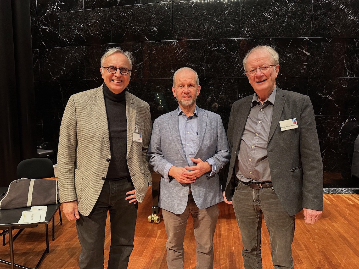 Angelos Mavridis, Frank Striesow und Wolfram Steinbeck (von links nach rechts) wurden in der 34. Parlamentssitzung am 19. November 2025 durch die anwesenden Parlamentarierinnen und Parlamentarier gewählt. (Foto: Bonner Spendenparlament)